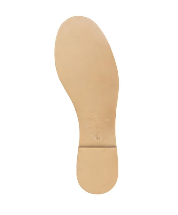Wir empfehlen, farbloses Geschirrspülmittel in warmen Wassern aufzulösen und vorsichtig mit einem Schwamm auf der Sohle aufzuschäumen. Es wird in kleinen, kreisenden Bewegungen gearbeitet und im Nachhinein alles trocken getupft.