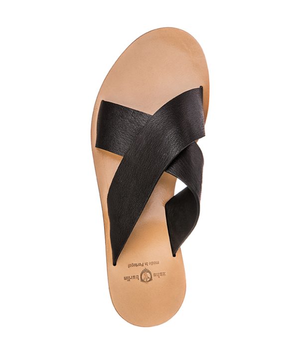 Bei dieser leichten Ziegenleder-Pantolette kreuzen sich zwei schlichte Lederriemen über dem Fußrücken und reichen bis zur Ferse. Eine Vollledersohle und der gummierten Absatz geben dem offenen Fuß einen festen Aufsatz. Diese einfache und dennoch elegante Sandale gibt es in den Farbvarianten Schwarz, Olivegrün und Weiß. Kommt mit praktischem Aufbewahrungsbeutel