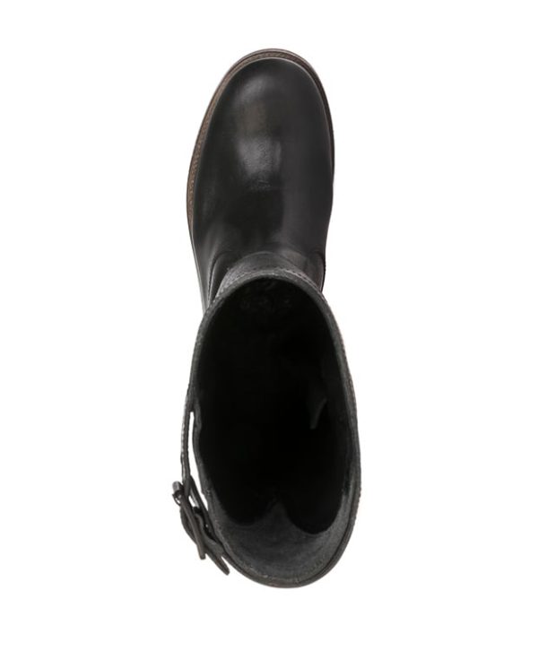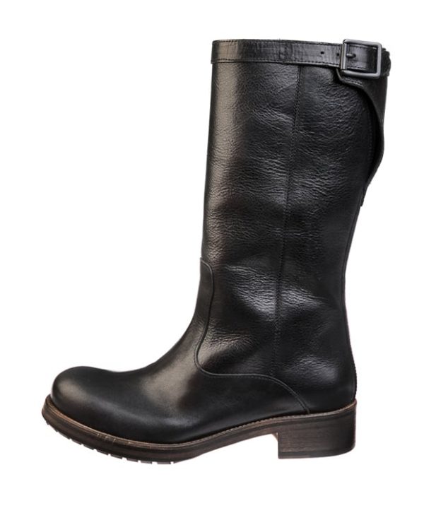 Durch das schwarze Kalbsleder veredelt ist dieser Damenbiker der perfekte Stiefel für die Herbst- /Wintersaison. Typische Merkmale; hohe Sprengung, wadenlanger Schaft (29 cm hoch), 15 cm langer Reißverschluss, runde Frontkappe und festes Profilgummi mit doppelter Vollledersohle 3,5cm hohem Absatz. Hier fehlt die Bikerschlaufe, was dazu führt, dass der Schuh etwas weicher wirkt und der Lederstruktur die Hauptrolle einräumt.