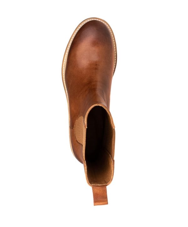 Klassische Chelsea Boots sind ein absolutes Must-have. Dieses Paar von Zeha besitzt eine abgesetzte Kappe und ist aus vegetabilem cognacfarbenen Kalbsleder gefertigt und gefüttert. Durch die charakteristischen elastischen Einsätze wird der Einstieg erleichtert. Die Ledersohle mit Laufgummi und der kleine Absatz bieten optimalen Tragekomfort. Die Schuhe kommen in einem praktischen Aufbewahrungsbeutel. Handgefertigt in Portugal.