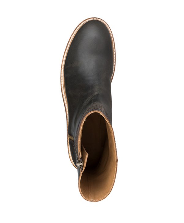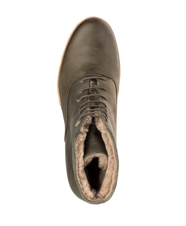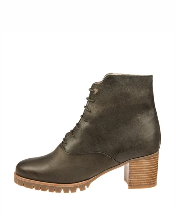 Diese Stiefelette besticht durch die Ziernähte an ihrem mittelhohen Schaft. Das Obermaterial der Schuhe ist aus glattem Rindsleder gefertigt und sie sind mit Kalbsleder gefüttert. In dunklem Olive machen diese Boots Lust auf Spaziergänge im Herbst und Winter. Für einen bequemen Einstieg sorgt der lange Reißverschluss. Mit dem kleinen Absatz und der gummierten Ledersohle bieten die Stiefeletten ein besonders angenehmes Tragegefühl. Die Schuhe kommen in einem praktischen Aufbewahrungsbeutel. Handgefertigt in Portugal.