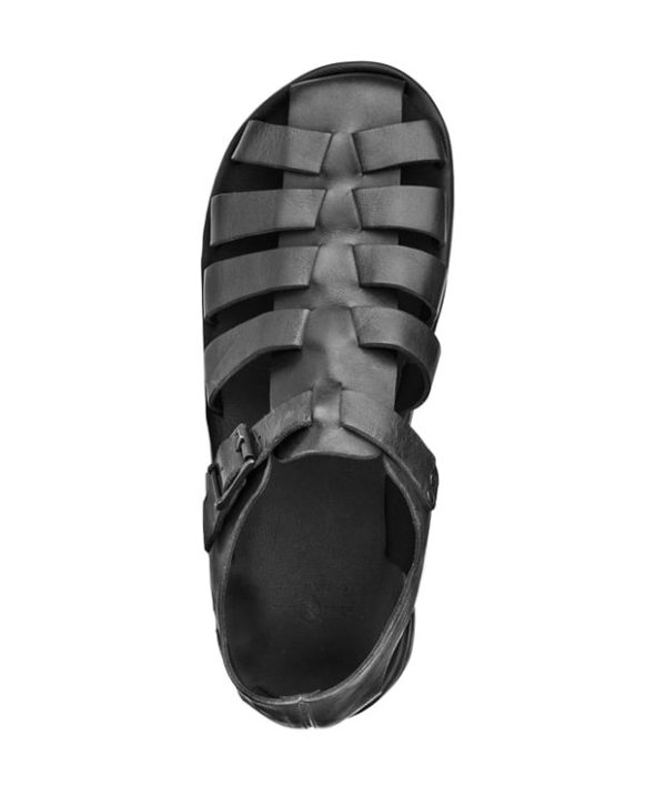 Für manche Männer ist der nackte Fuß ein heikles Thema, wobei die Vollleder Sandale ein Klassiker für die warmen Tage ist und das trendlos fortwährend. Das Römersandalen-Modell kaschiert die Zehenpartie und umschließt den Fuß ohne jedoch an Freiraum und Luftigkeit einzubüßen. Eine kleine Dornschnalle an der Außenseite erleichtert den Einstieg. Alle drei Farbvarianten sind aus Rindsleder produziert worden.