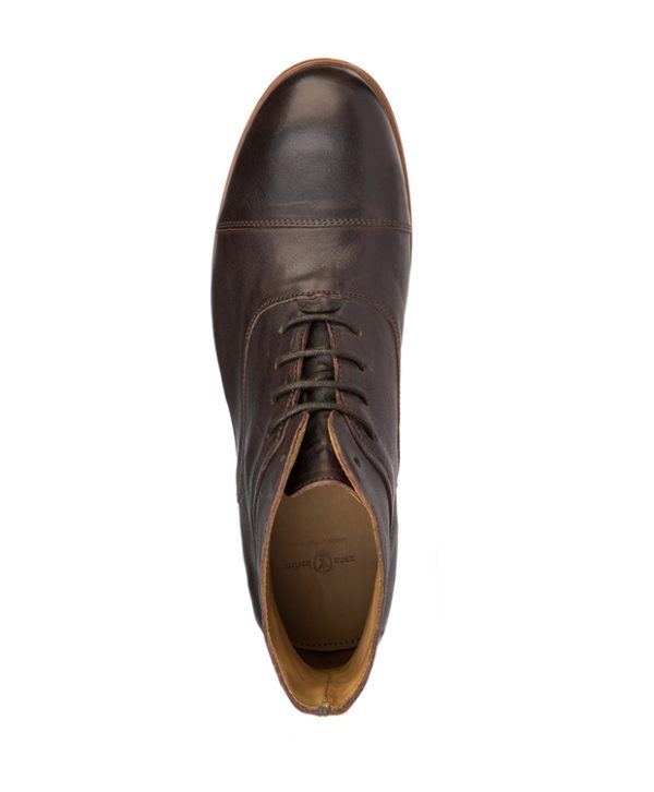 Derby – Stiefelette mit 4-Loch Schnürung aus Kalbsleder und Vintage-Effekt im Stil der 20er Jahre. Diese knöchelhohe Stiefelette ist optisch in vier Lederpartien eingeteilt, die in geschwungenen Linien die eher rustikale Formgebung geschmeidiger machen. Der verstärkte Zehen- und Fersenbereich, die gepolsterte Innensohle sowie eine durchgenähte Laufsohle aus hochwertigem Leder mit abriebfestem Laufgummis sorgen für einen hohen Tragekomfort. Kommt mit einem praktischen Aufbewahrungsbeutel.