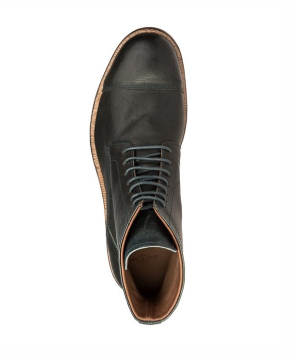 Frontkappen – Stiefelette aus hochwertigem Vacchetta, welche durch seine 7-Lochschnürung über den Fußknöchel reicht. Im Finish bekommt das gewachste Leder durch Bürsten einen seidenmatten Glanz.